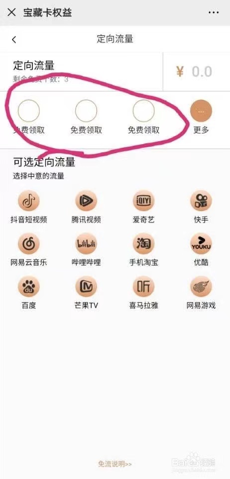 下面就为大家介绍介绍一下花卡宝藏版3个定向流量的选择的方法步骤: